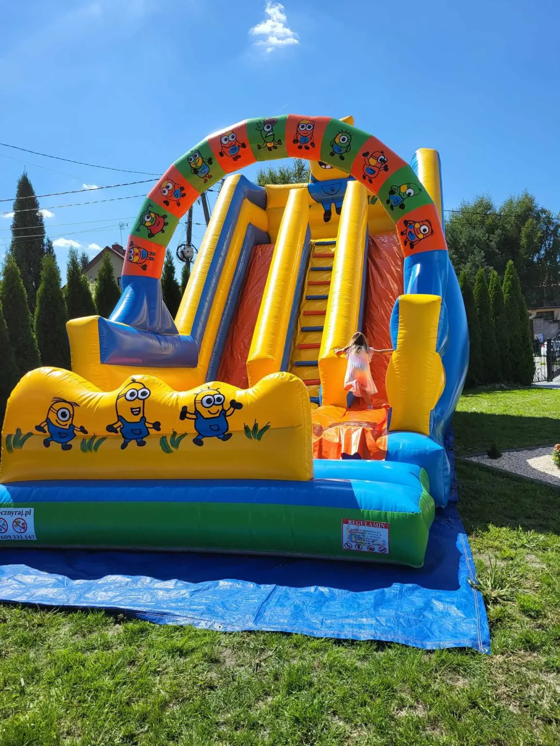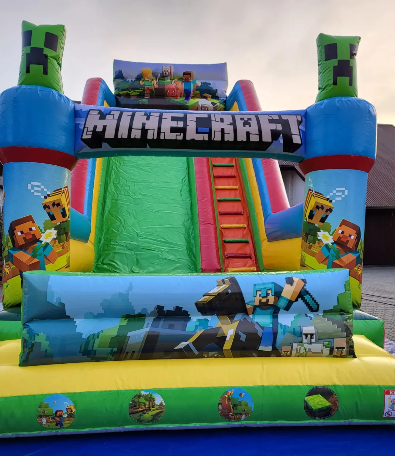 Kolorowy dmuchaniec, który świetnie sprawdzi się na każdym festynie czy miejskim wydarzeniu. Dzięki kompaktowym wymiarom można go rozstawić nawet na mniejszym placu, a barwne wieżyczki od razu przyciągną uwagę najmłodszych..